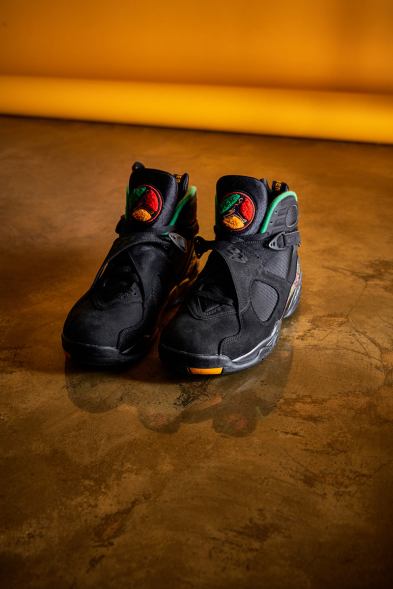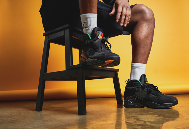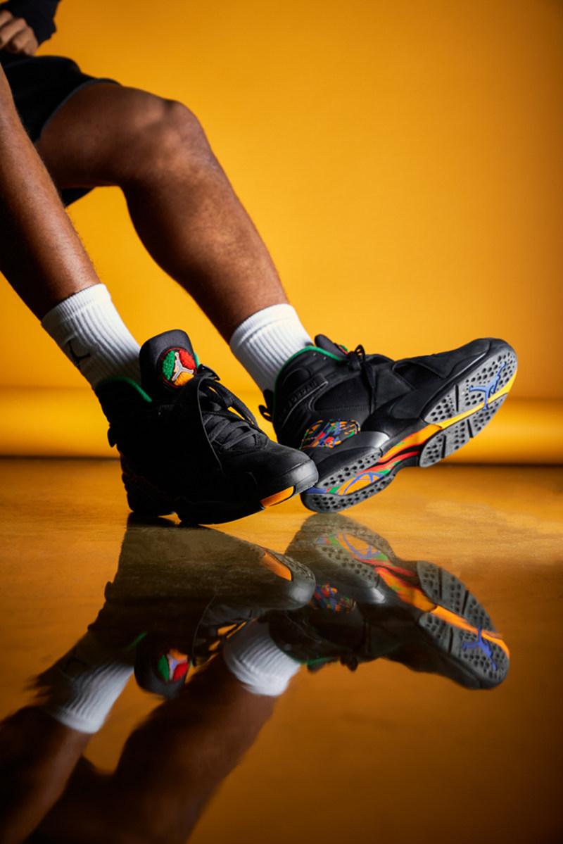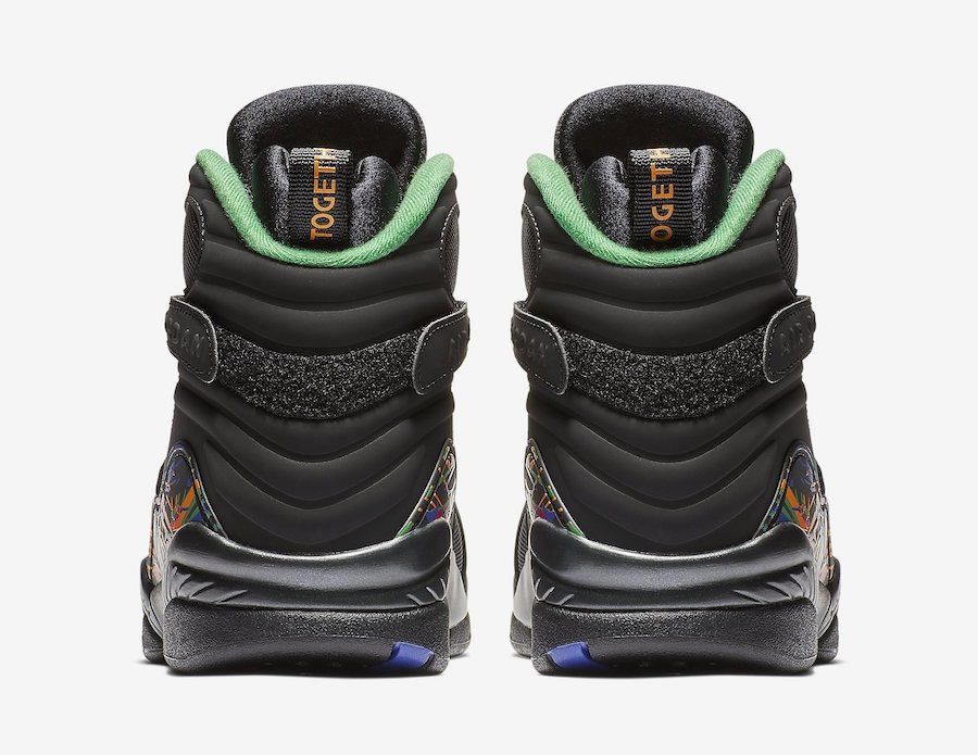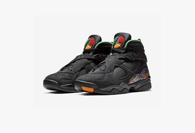 Air Jordan 8 标志性的 TPU 及鞋舌红黄蓝绿的彩色涂鸦风格装扮,尽显民族风情,内衬及中底同样以彩色点缀。超酷纯黑主调又有亮眼彩色装扮,是冬季绝佳的上脚选择。