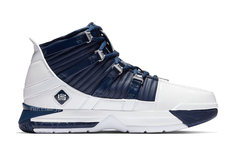 今年 Nike 将詹姆斯进入联盟的早期战靴 Zoom LeBron 3 正式带回,继黑金首次复刻后,另一款更具人气和吸引力的白蓝配色则确定在周四正式回归!