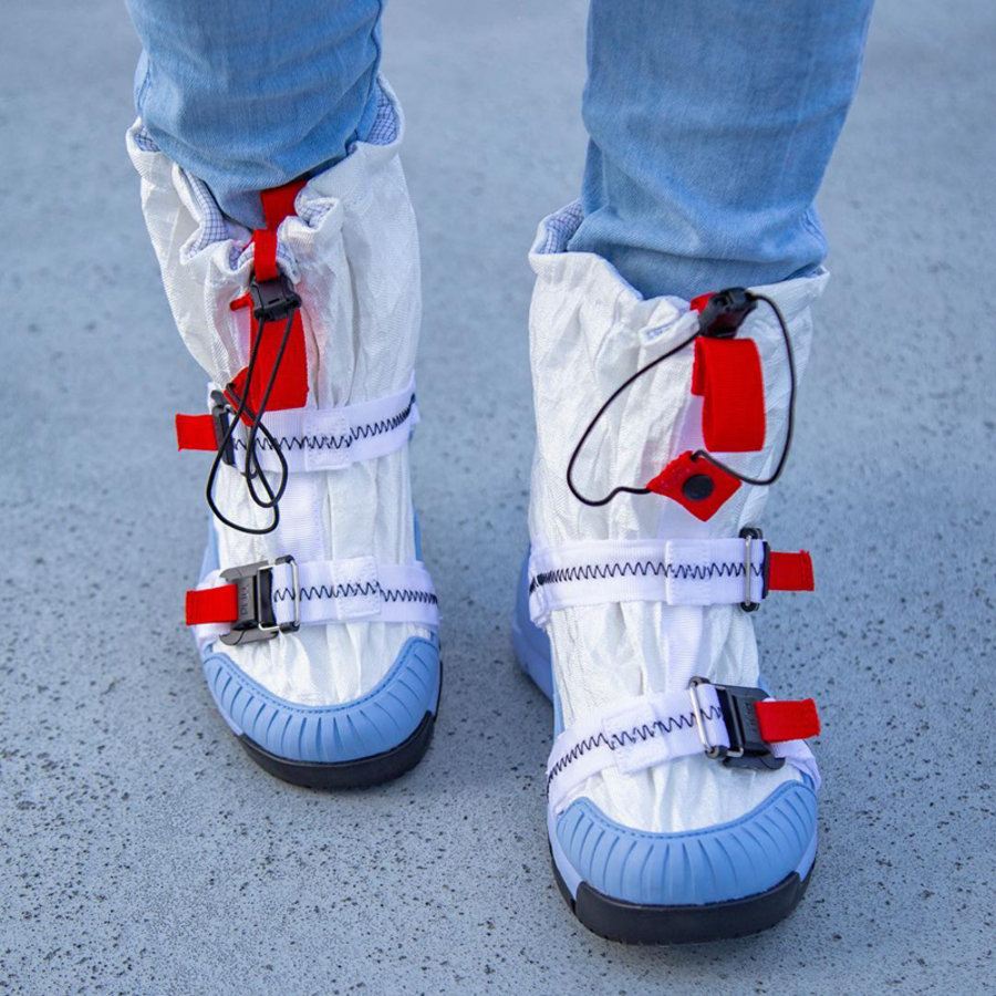Tom Sachs 打造的 “火星鞋” 今年迎来了全新版本,风格更加夸张。双层鞋面设计搭配磁力卡扣,让这款全新版本更像一款厚重的滑雪靴,科技感十足。