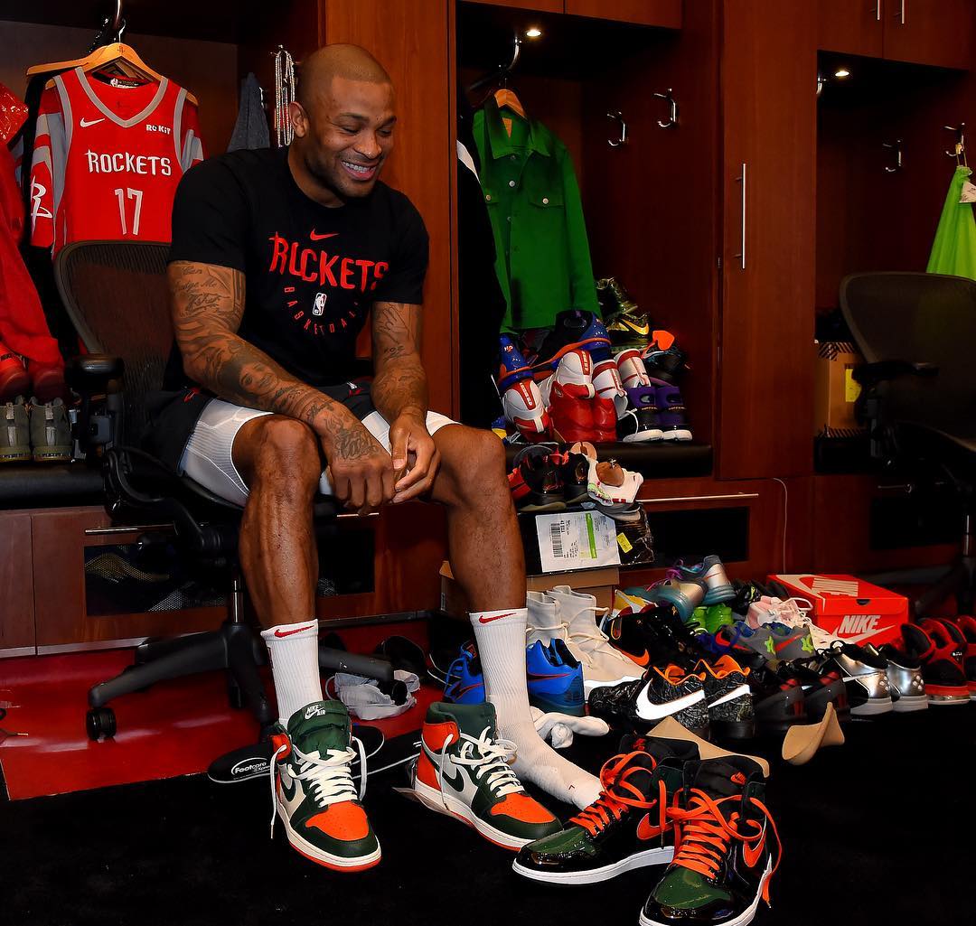 说起备受球鞋玩家喜爱的 P.J. 塔克,大部分人首先冒出的绝对是 “场均三双” 这个关键词,将超限量球鞋拿来实战 NBA 的人有不少,但休息期间还要换鞋的球员就很少了。
