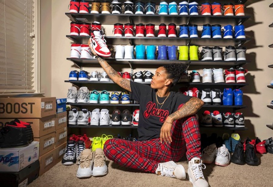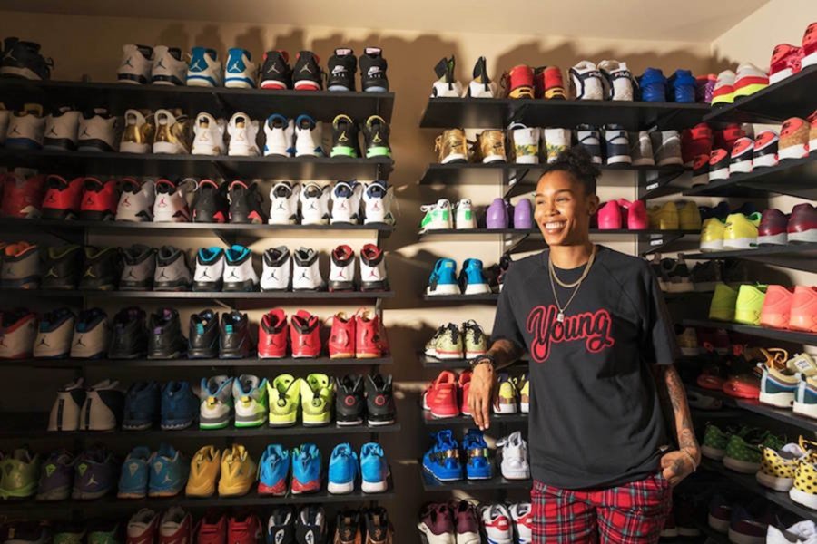 Las Vegas Aces 队的 Tamera Young 就是这样一位女鞋头,同样拥有超多球鞋收藏,堪称 WNBA 女鞋王!