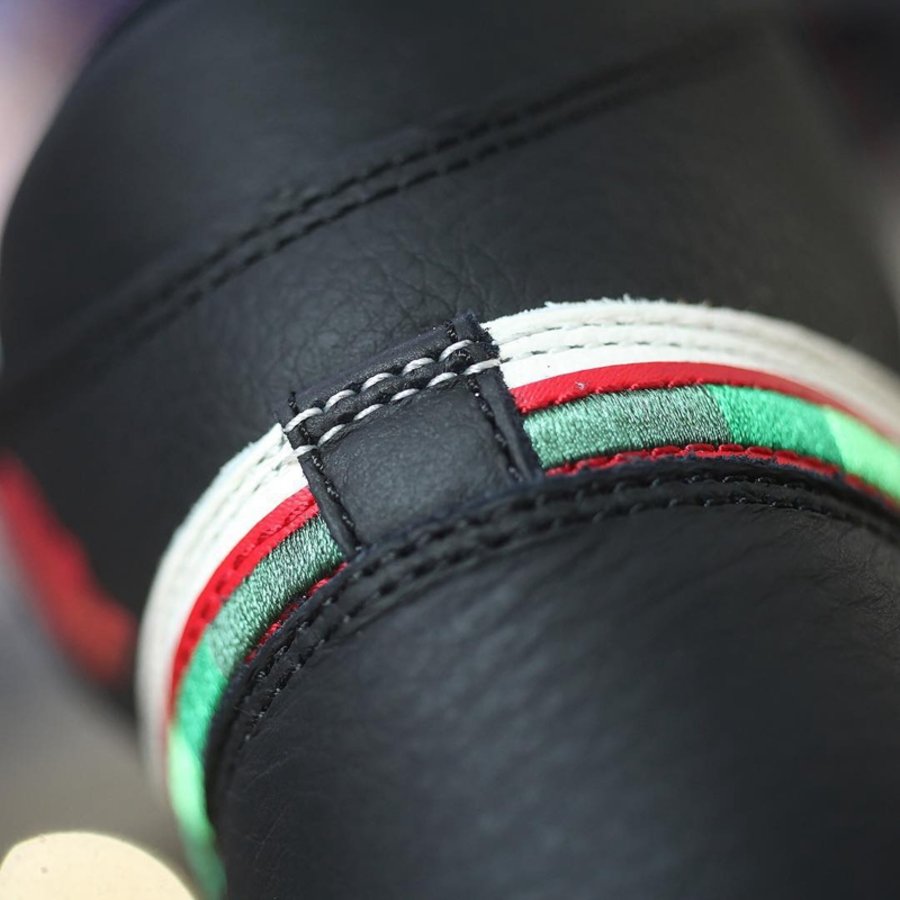 整体设计最为吸睛的当属 Swoosh Logo,与传统皮革版本不同,这双 “体育画报” 采用创新的撞色刺绣呈现,带有不同深浅的绿色渐变条纹,灵感来自体育画报封面上的雄鹿球衣。