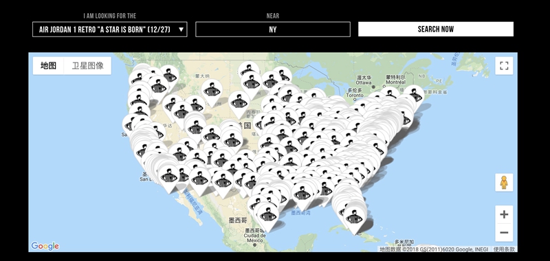 从北美发售店铺地图来看,发售店铺数量众多,可能货量不小。将发售发售男、女尺码,目前预售价女码在 ¥1600 元左右,男码在 ¥2000 元左右,在 Air Jordan 1 中不算很高。