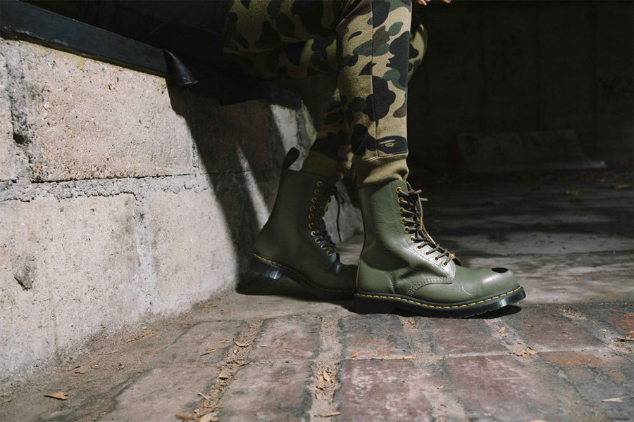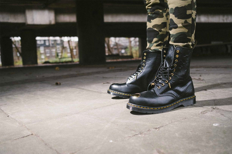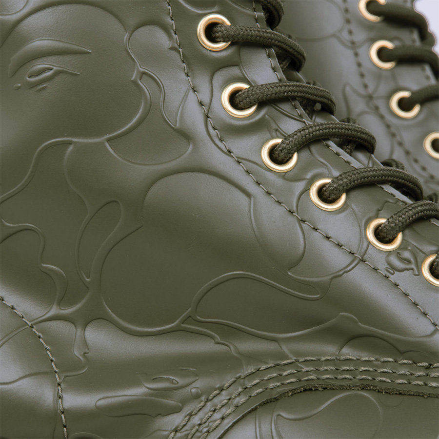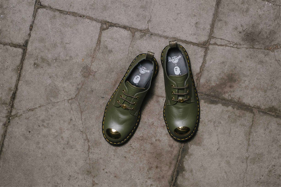 Dr.Martens 再次携手 BAPE®,带来两款远看帅气、近看精致的联名新鞋。 这两款马丁靴采用了不同颜色的皮革打造,独特的鞋头设计和金属配件的装饰都气质不凡。 皮革鞋面呈现了 BAPE® 标志性的迷彩纹理,APE HEAD 猿人头像暗藏其中,绝对让 BAPE® 粉丝们难忘! 目前已经登陆 Dr.Martens 和 BAPE® 店铺发售,有兴趣的朋友不妨关注。