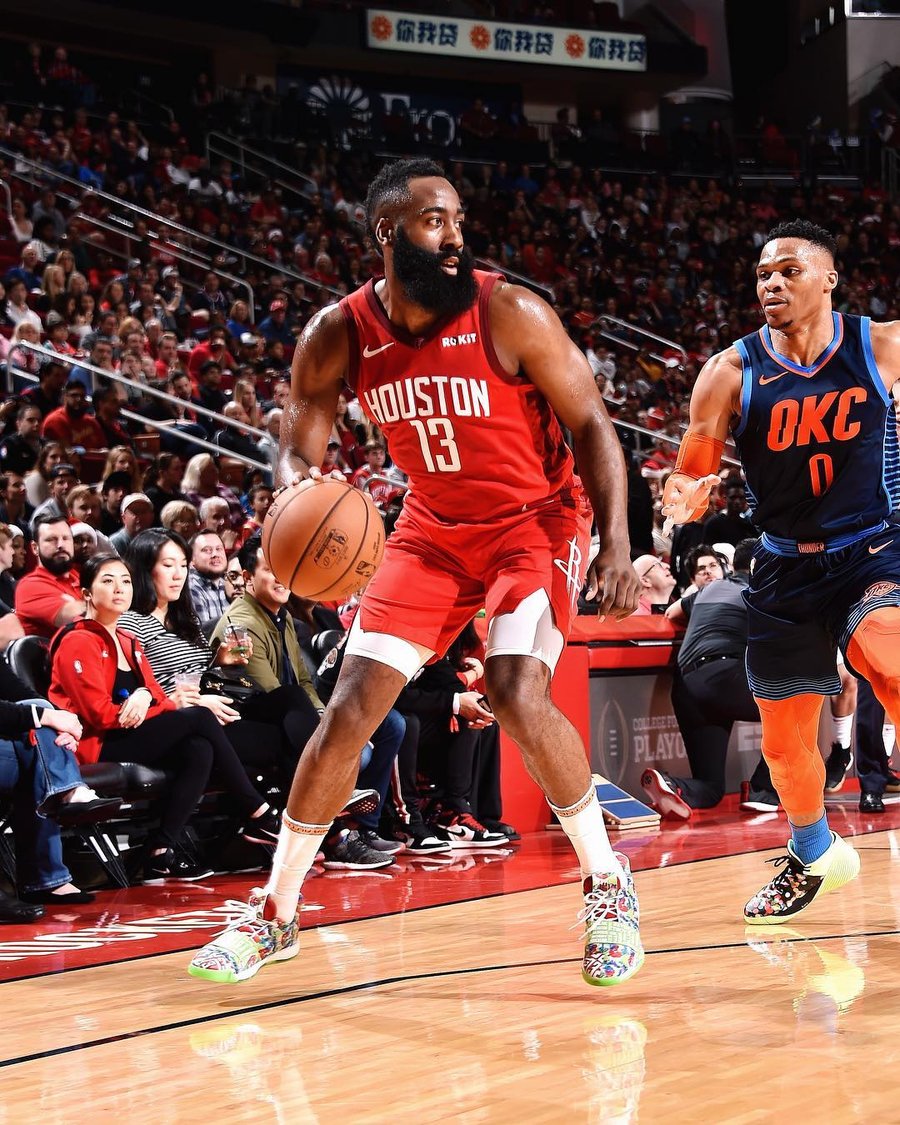 塔克依旧问鼎 “鞋王” 称号,今日火箭 VS 雷霆的比赛中上脚了一双 LeBron 6 “Stewie Griffin”,值得一提的是这双鞋在 Sneaker Con 香港站曾拍出了 ¥24 万元的天价。