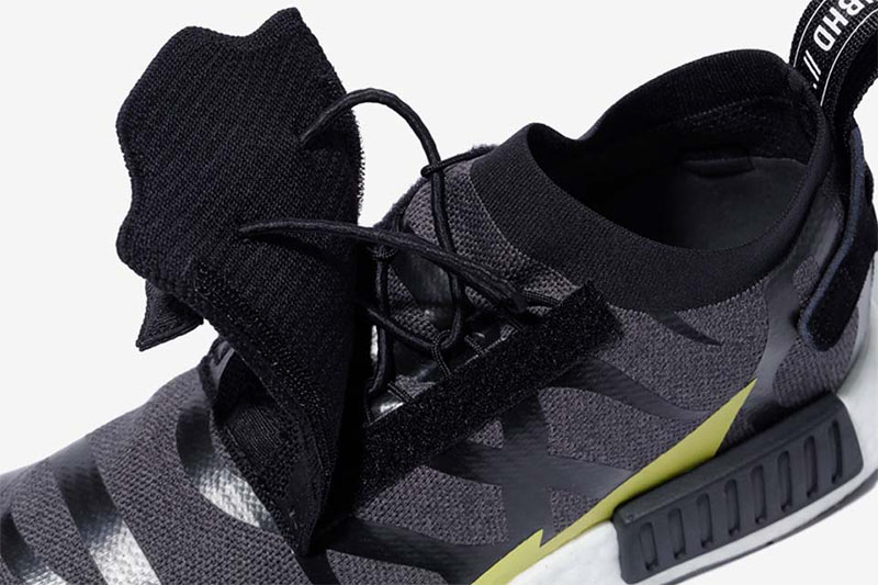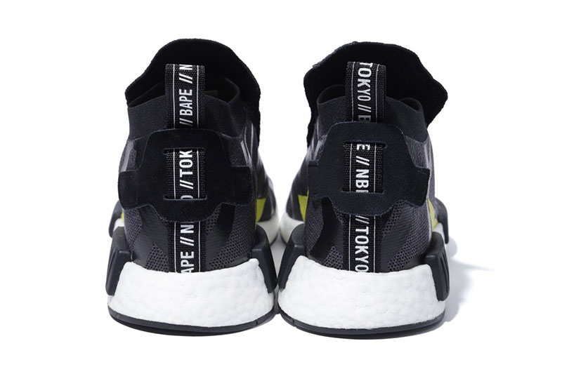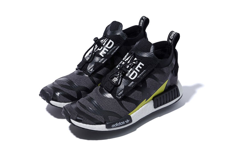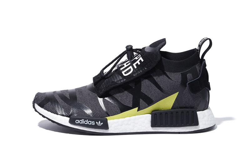 另一款 NHBAPE® NMD STLT 则将久违的荆棘元素带回,并醒目注有 “NBHD”、“BAPE”、“东京” 字样,凶猛的气氛之下,更彰显霸气的联名身份!