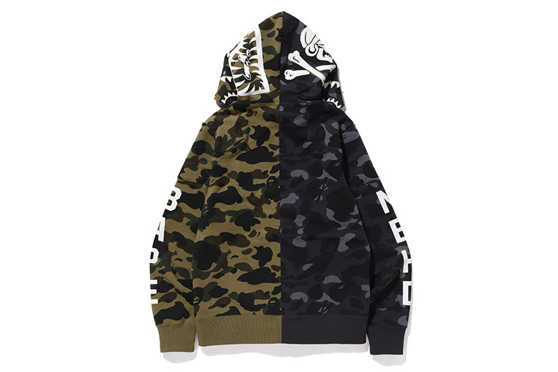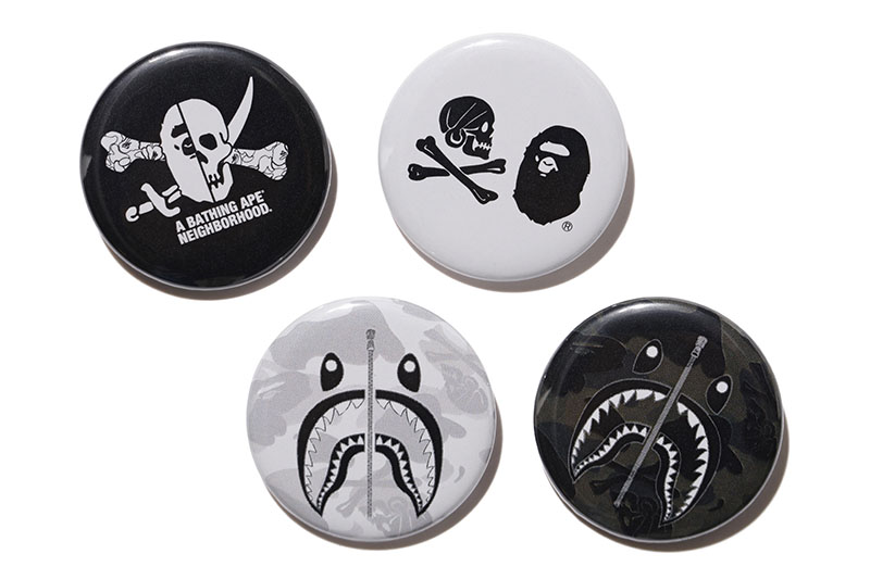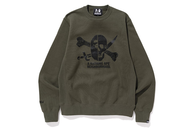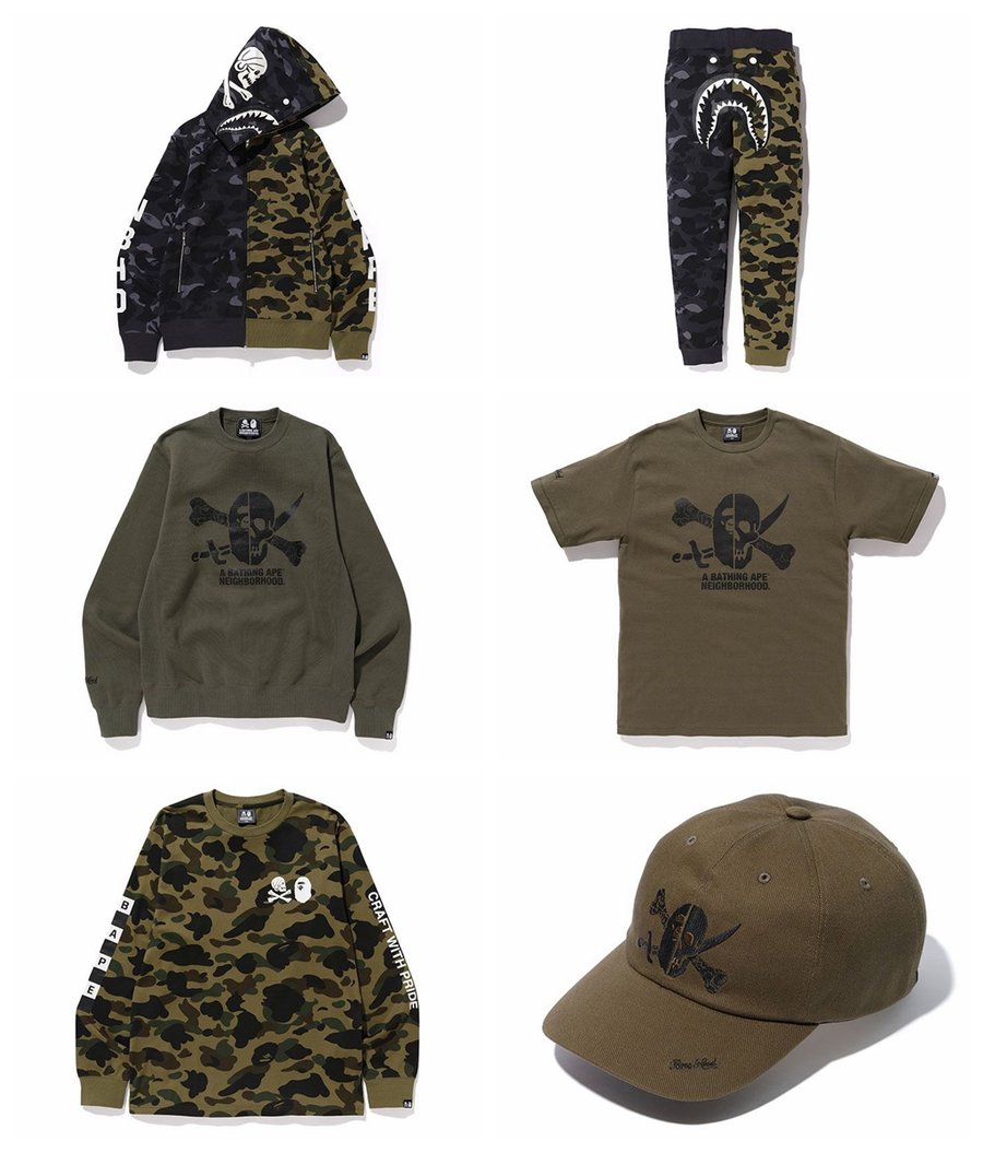 在本次联名单品中,均可见双方经典的骷髅骨、猿人头设计元素,采用黑、白和军绿色为主调,贯彻 BAPE® 拿手的街头风范,同时又彰显出 NEIGHBORHOOD® 独有的军事气息。