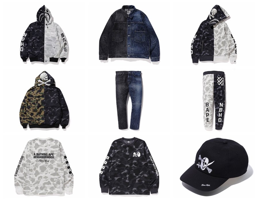 除此之外,NEIGHBORHOOD® 与 BAPE® 还将带来一系列全新打造的联名服饰!包含羽绒外套、卫衣、牛仔夹克、长裤、Cap帽等重磅单品,绝对称得上年度压轴的话题大作。