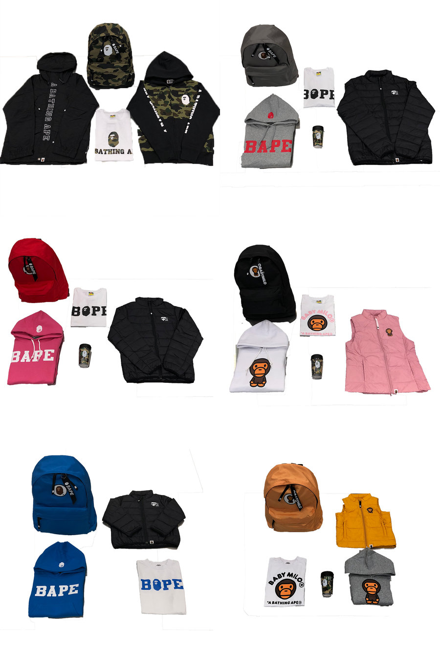 无论是完全选用这个福袋中的单品穿搭,还是搭配你以前的 BAPE® 单品,都能轻松驾驭。