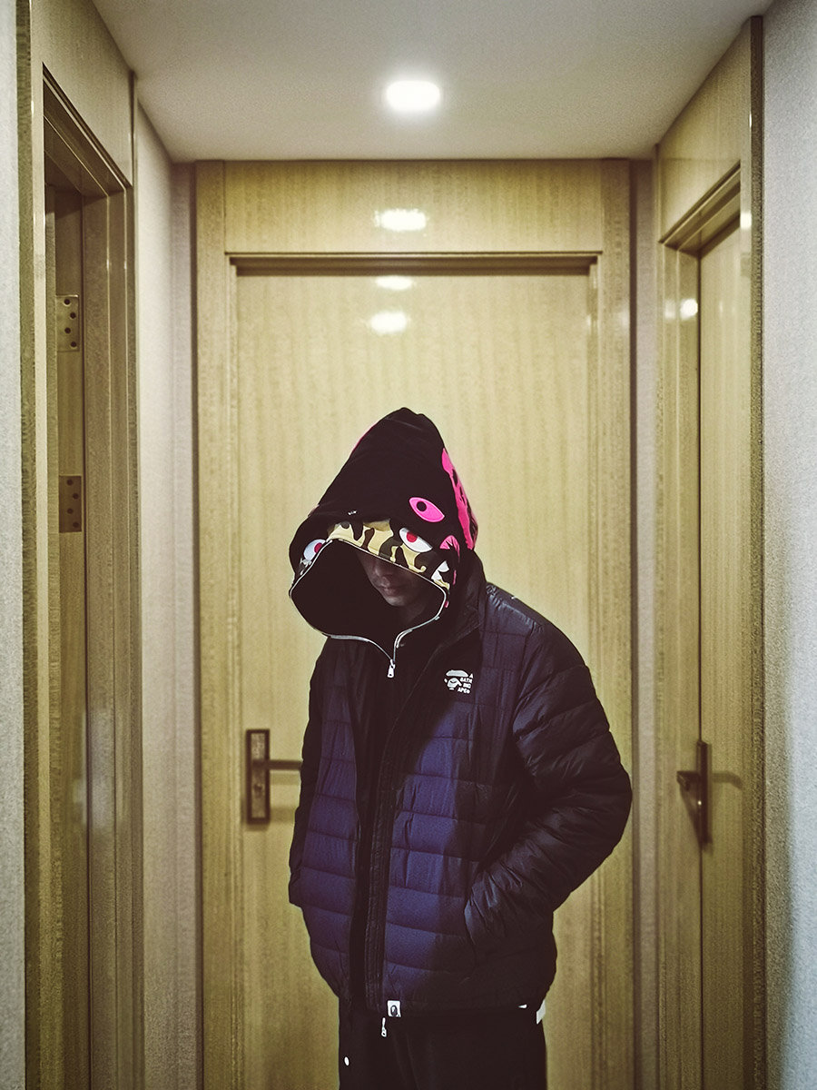 深色系的 Down Jacket 羽绒夹克 Hold 住凌厉的寒风,细节的猿人刺绣头像在低调间彰显了不俗的潮人气质。