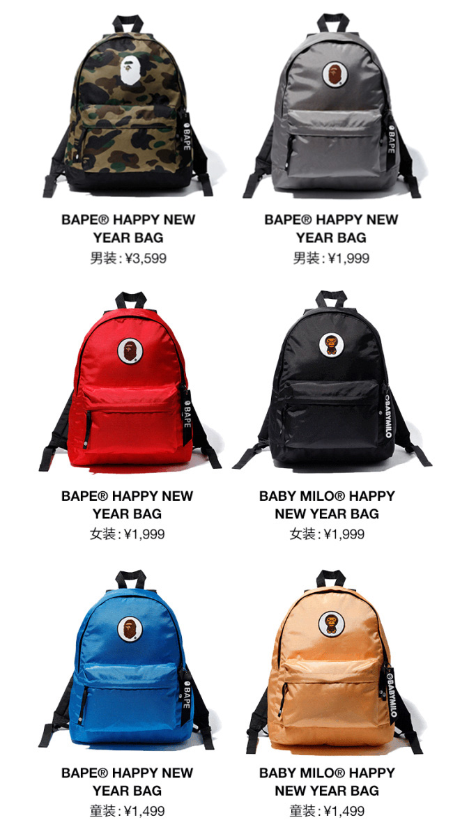 每年的新年第一天,BAPE® 都会发售福袋,以感谢粉丝们过去一年的支持。