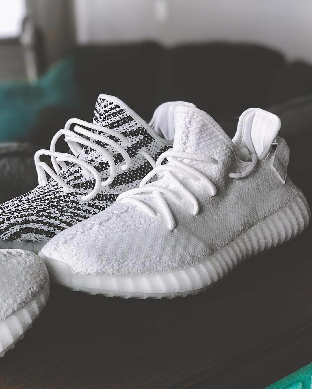 从曝光之初就受到众人期待、持续占据关注度的黑紫、黑绿脚趾两双 Air Jordan 1,依旧难以击败同月发售的纯白 Yeezy Boost 350 V2,因为对手实在是太强大了。
