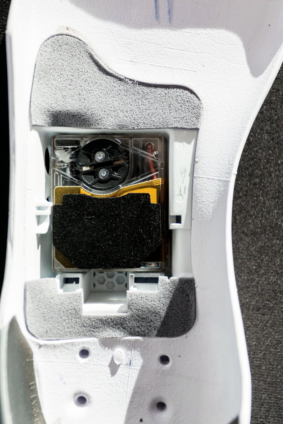 当双脚穿入 Nike Adapt BB 后,中底内置的核心部件会自动感应到双脚所需贴合度,并自动调节至合适收紧的程度。