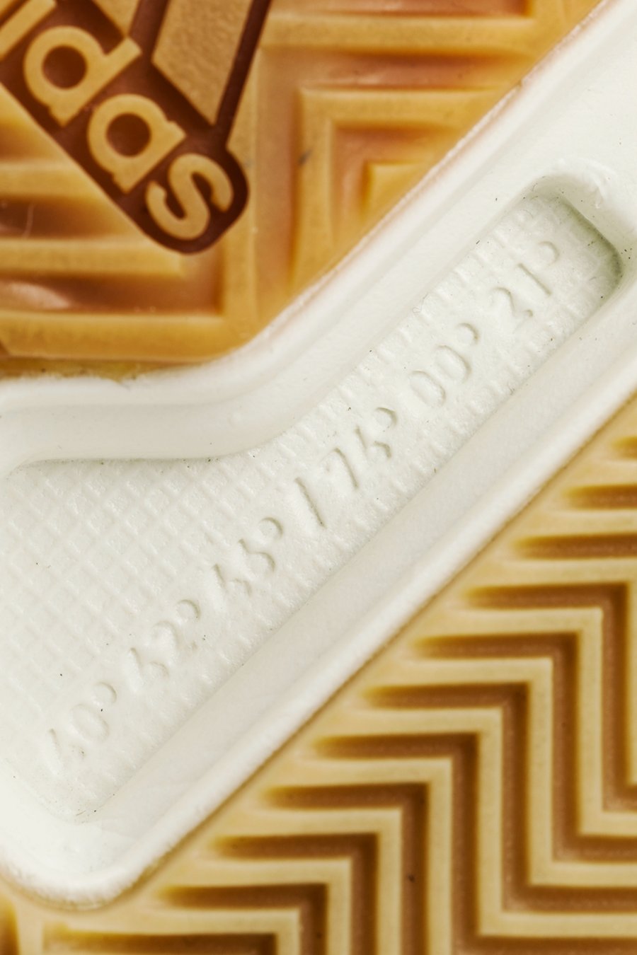 相比于传统的 TPU 材质,本次采用镂空设计。按上去手感类似于硬质橡胶,保证强度的同时,进一步减轻了鞋身额外的重量。细节刻画有熟悉的三线凹槽及条纹点缀,仪式感还是一定要有的。