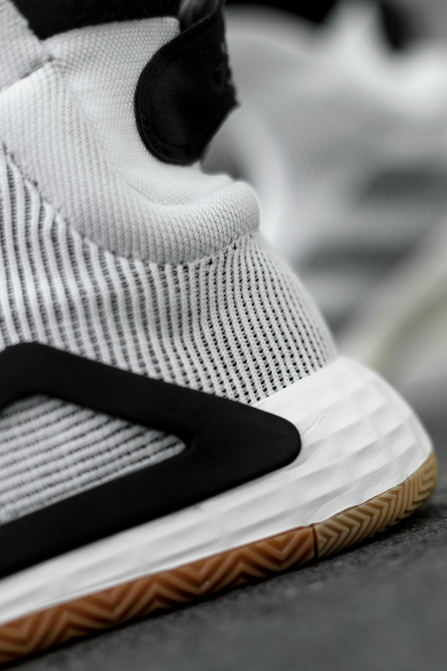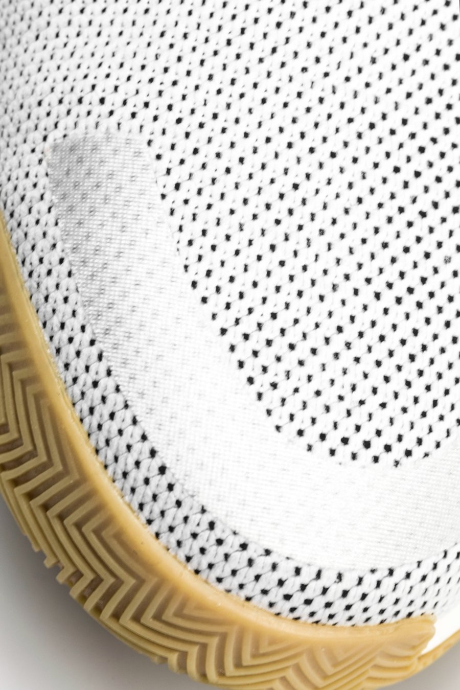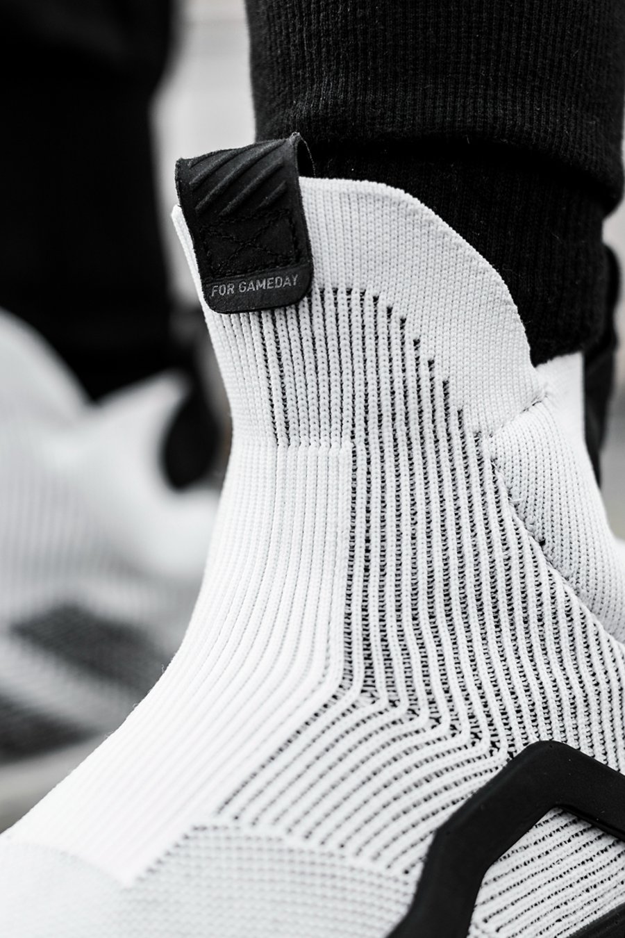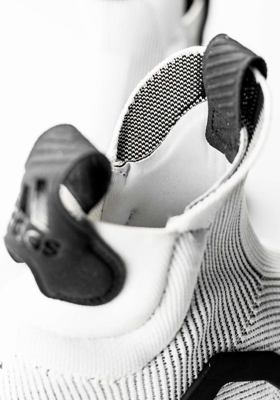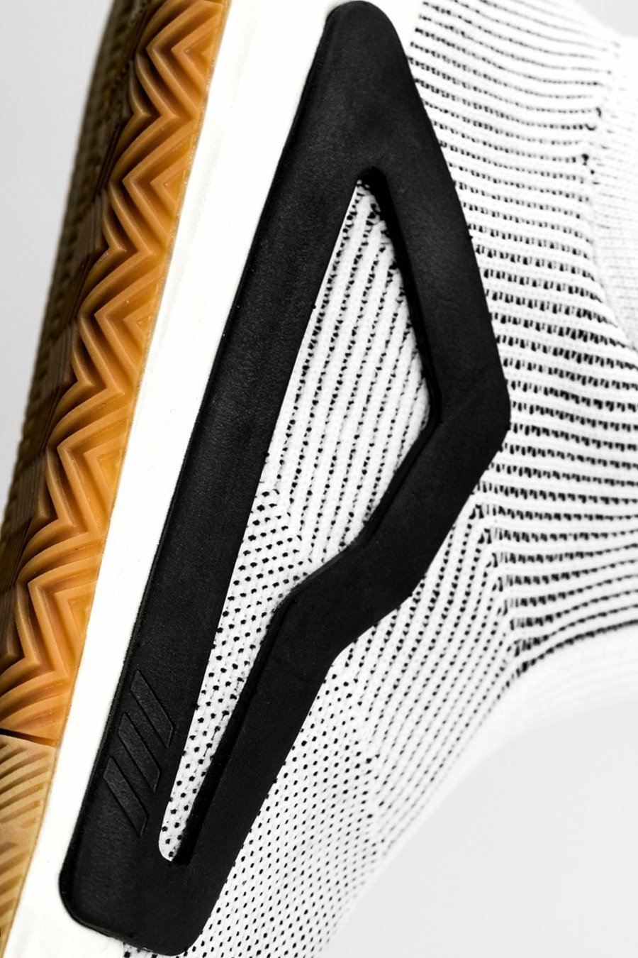为保证充分的稳定与包裹,鞋身采用不同纹理及密度的 Primeknit 编织,以多层结构打造。鞋头部位需要透气,采用网孔呈现。鞋领、脚背、后跟部分则需要紧致稳定的包裹,通过弹性编织及内置高弹绑带设计,达到锁定双脚的目的。