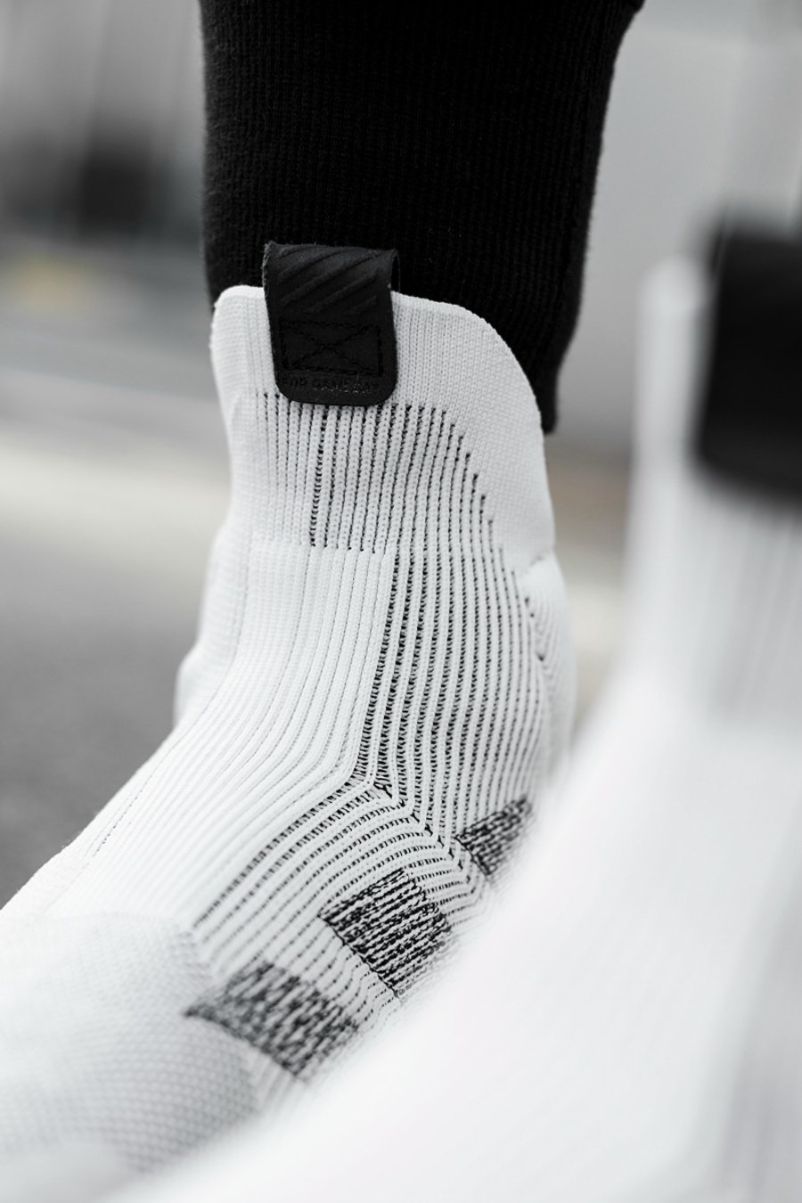 由于是袜套鞋领,前后鞋提自然必不可少。麂皮材质打造,手感很好,造型也更加宽大,并在后跟特别设计了下方开孔。穿脱时,双手可以从各个方向提拉后跟,算是很人性化的创新设计!