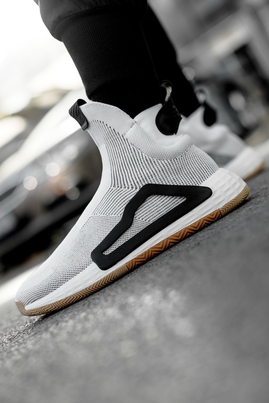 作为 adidas 历史上,第一款真正意义上完全没有鞋带构造的篮球鞋,adidas N3XT L3V3L 整体设计语言非常简洁,犹如一艘未来的飞行器,流畅的鞋身线条与夸张的高帮造型,让人过目不忘。