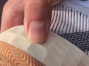 外观看上去非常细腻,完全没有 BOOST 的那种颗粒感。中底的覆盖面积与厚度非常可观,按上去比之前 DAME 4 中 Bounce 更形变更明显!