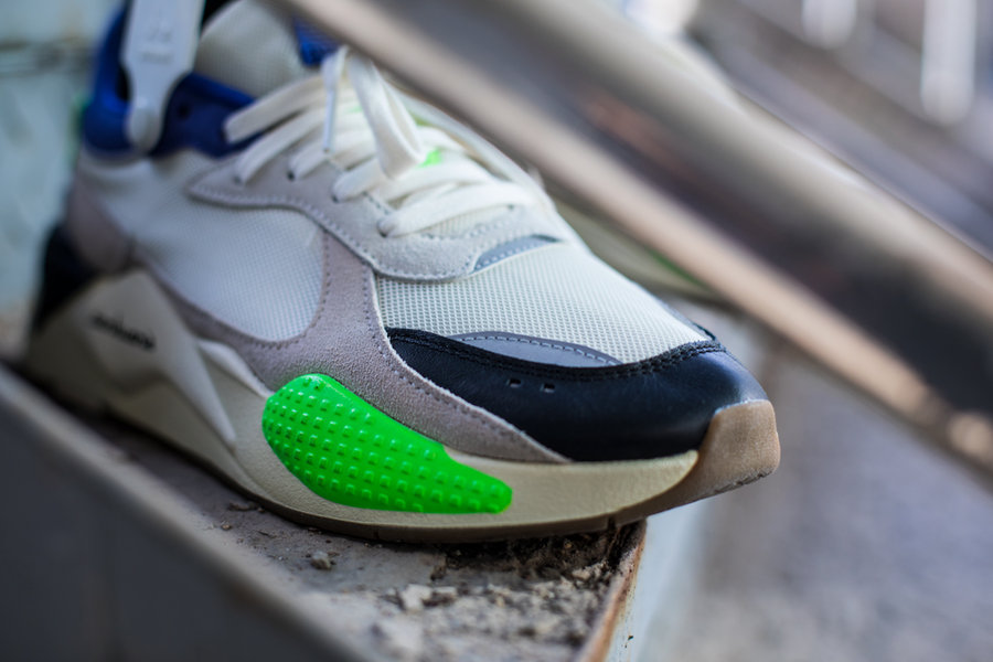 设计灵感取自 PUMA RS 系列的 RS-X,在经典中突破,创新前卫的鞋型,鞋身同样采用醒目的霓虹色撞色设计搭配反光覆层。