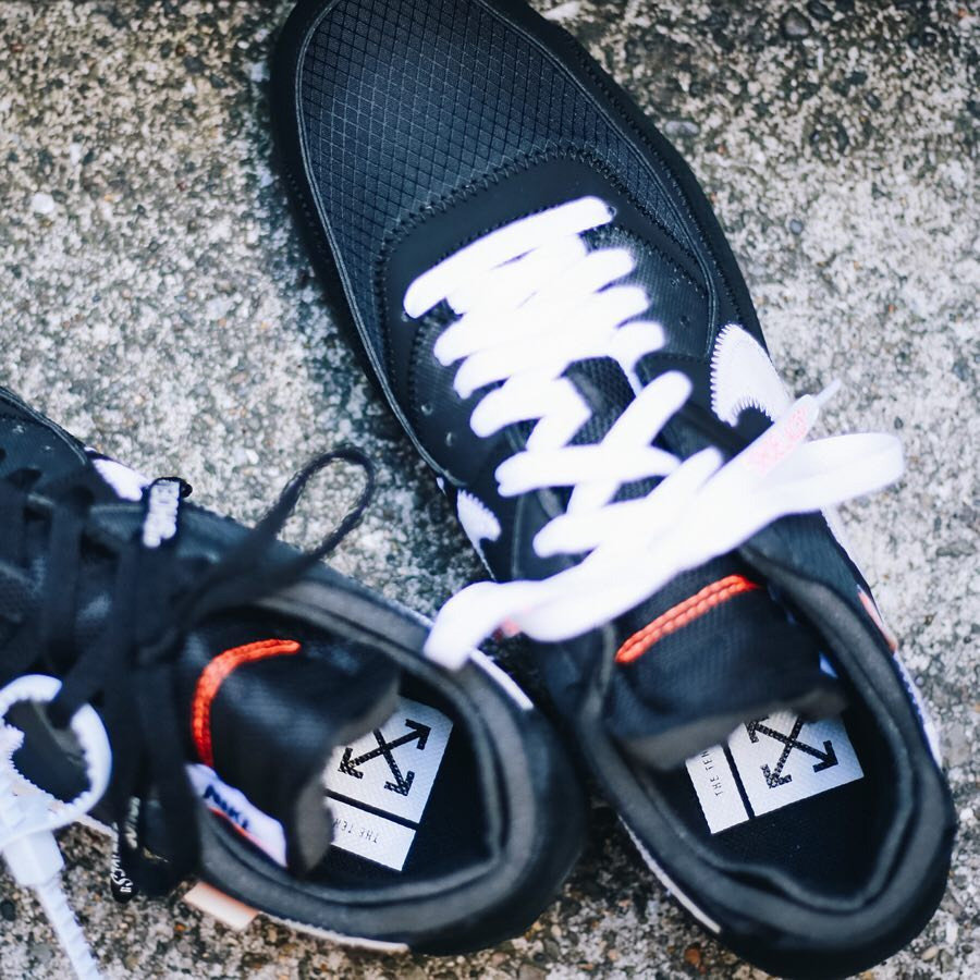 这一次依然是双色同步登场,一款是颇具 The Ten 气质的黑白装扮,黑色鞋身搭配白色的 Swoosh,这也是 Virgil 本人的最爱设计。