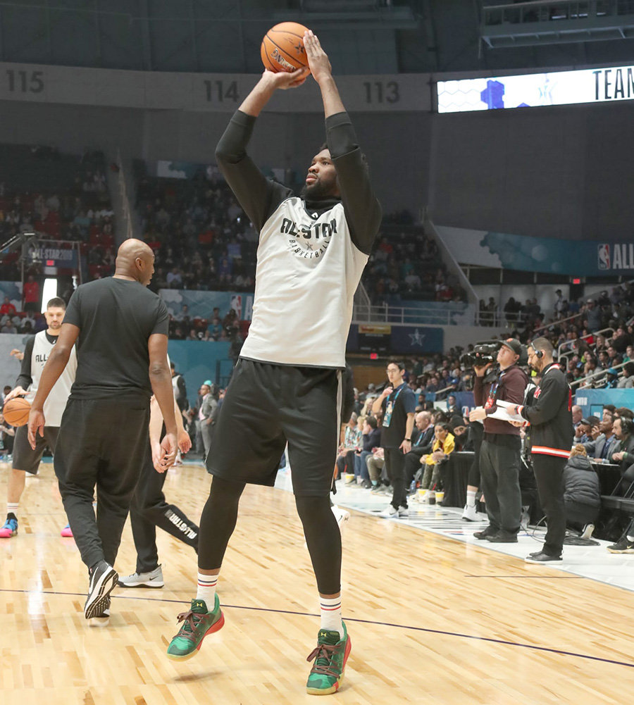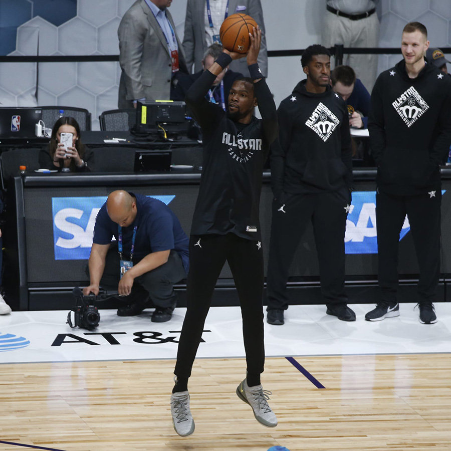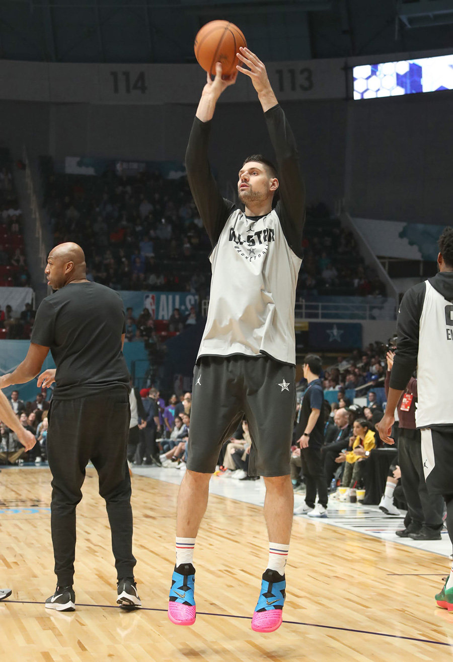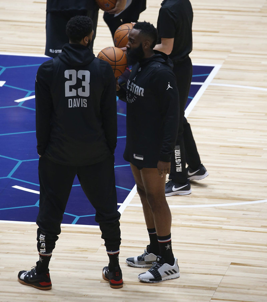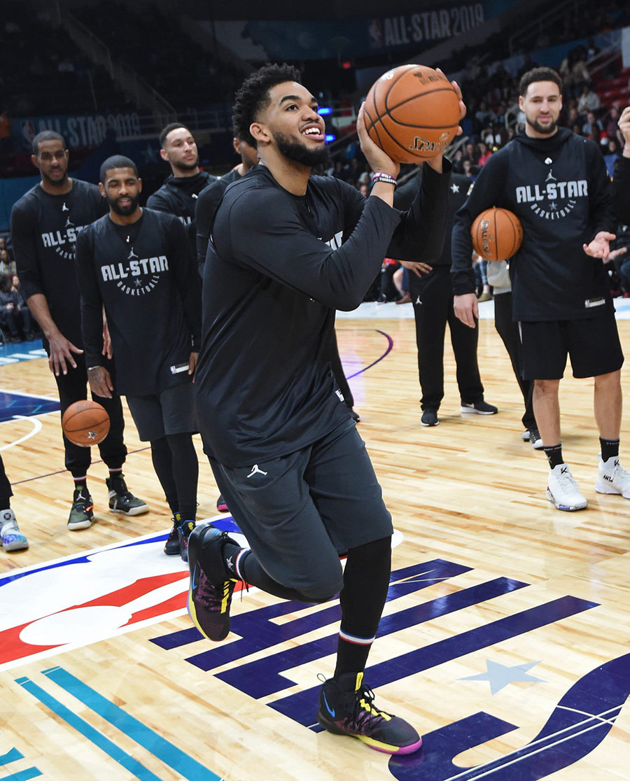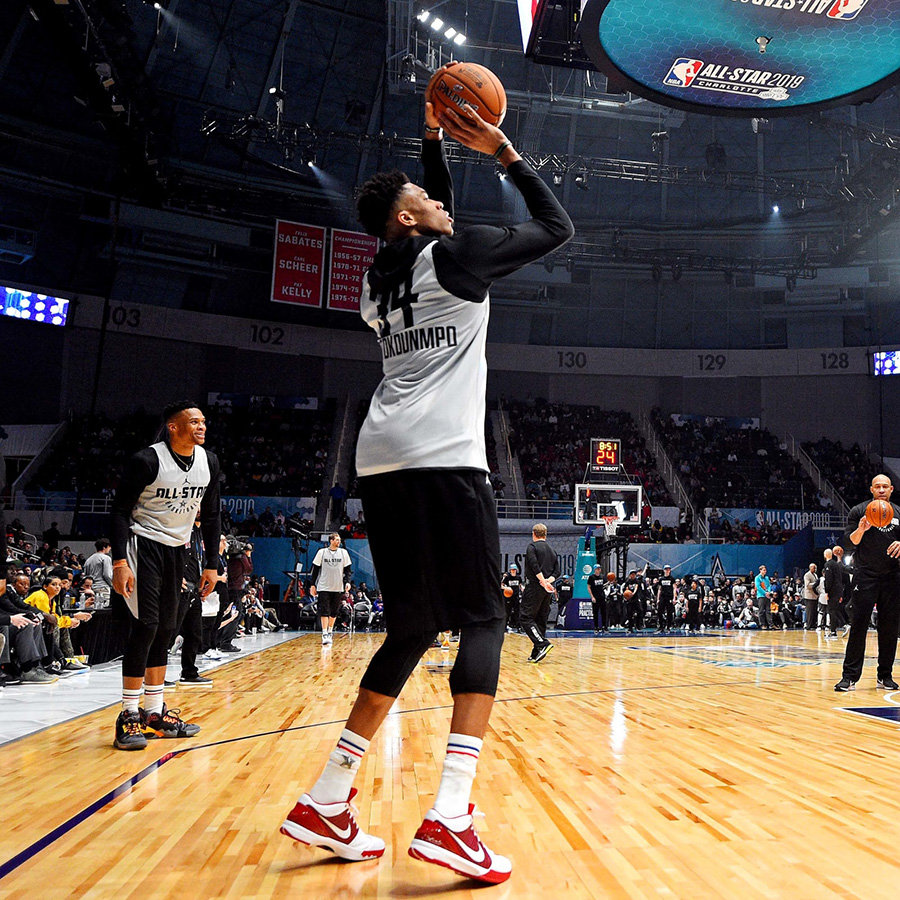 今天迎来了各位全明星球员的赛前热身,虽然并没有太多 All-Star 全明星新配色的亮相,但是也有很多的新品。