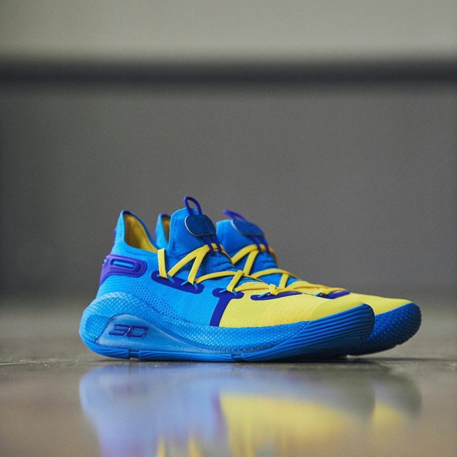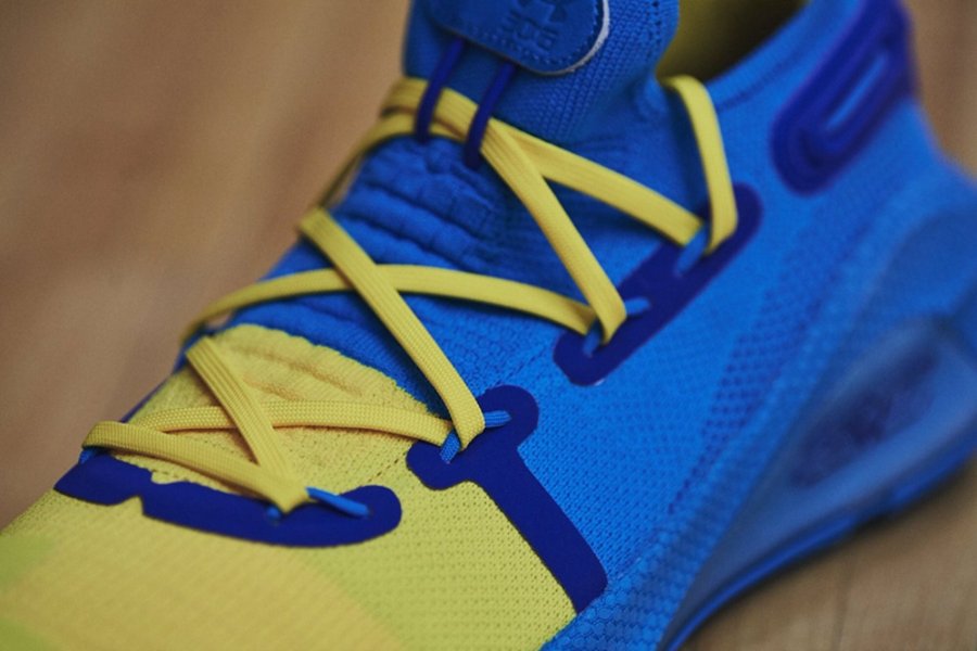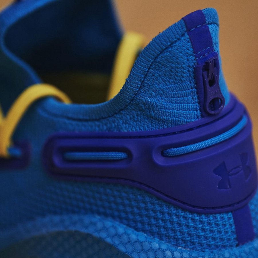 以最新战靴 Curry 6 为蓝本,鞋身采用蓝、黄撞色示人,后跟特别追加拉链设计,还原夹克主题。