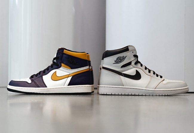 以最经典的 Air Jordan 1 元年鞋型为蓝本,鞋身以大面积的白、紫双色装扮,在鞋帮、Swoosh 处的金色点缀下,满满的湖人既视感。