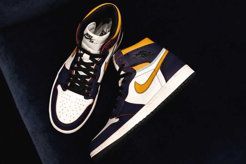 此次 Nike 找来了自家话题量最高的 Air Jordan 1 与 Nike SB 联名合作,以 NBA 知名球队洛杉矶·湖人的紫金球衣为灵感,将滑板文化与篮球文化完美结合。