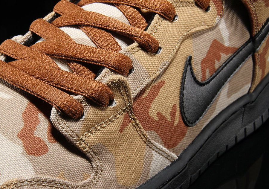 近期网络传出一组沙漠迷彩装扮的 Nike SB Dunk High,绝对让不少军事风装扮爱好者大呼过瘾。