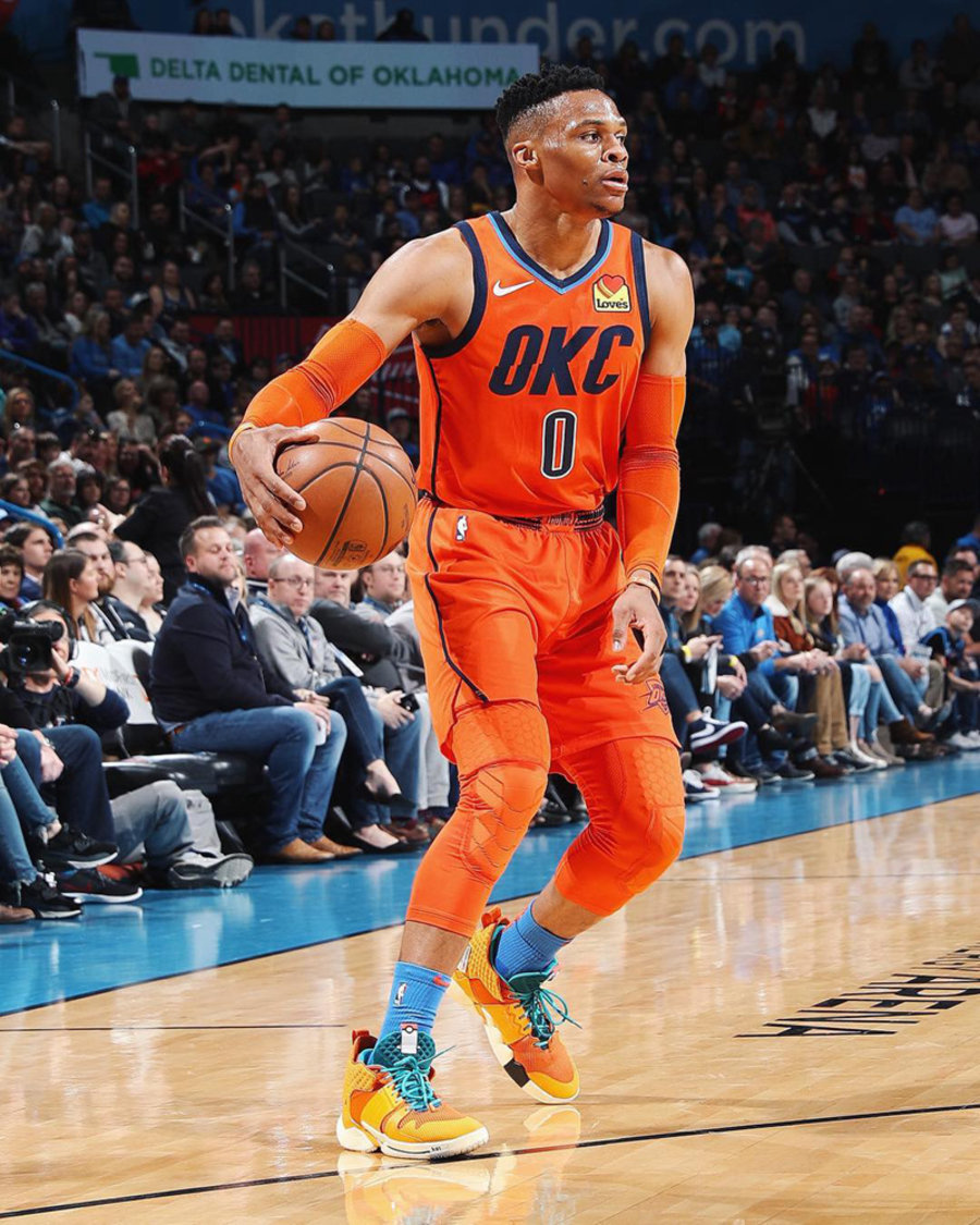 在 adidas 公布了联名鞋款之后,威少也于近日上脚了多款宝可梦配色的 Why Not Zer0.2,让人不禁期待 Nike 阵营的有联名计划!