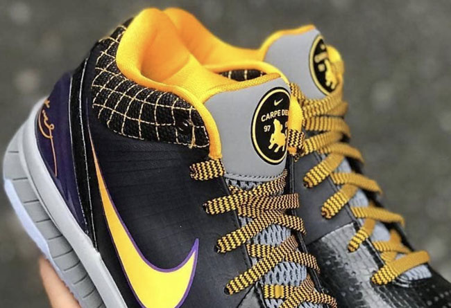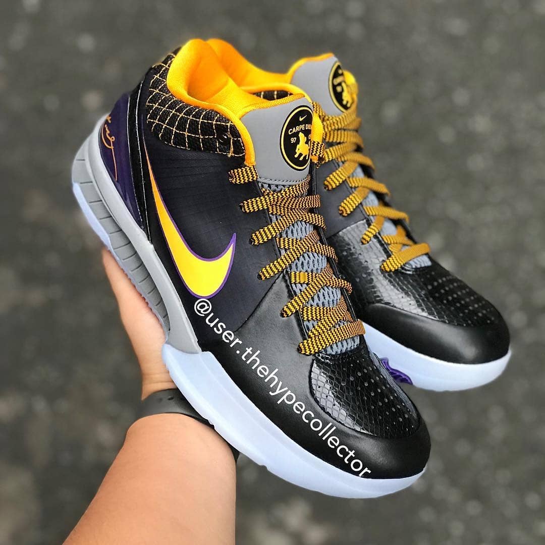 以科比座右铭拉丁语 Carpe Diem 为主题,意为 “把握当下,过好每一天”。自 Zoom Kobe 4 问世后,掀起低帮篮球鞋的风潮,作为最早发售的配色之一,Zoom Kobe 4 “Carpe Diem” 也正是湖人紫金王朝的全盛时期,给我们留下太多难忘回忆!