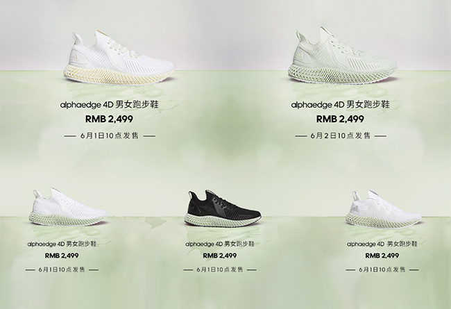 adidas 在官网一次性上架了 5 双 ALPHAEDGE 4D 跑鞋,其中 4 款将于明早发售。