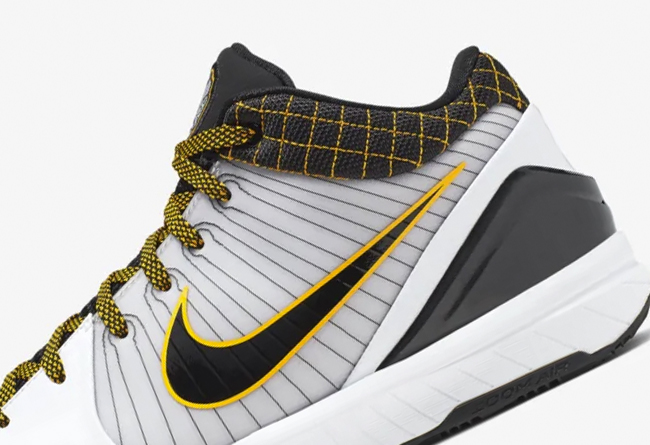 这双伴随科比夺冠的战靴,以黑白为主色调。鞋带、鞋帮等多处细节也以黄色点缀,整体配色风格抢眼又好搭。