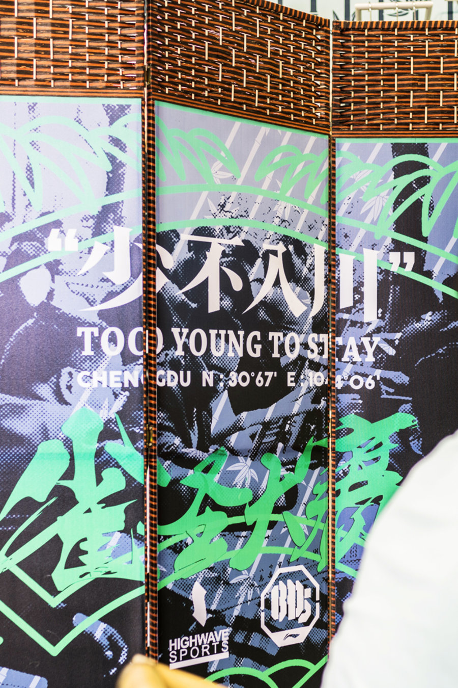 现场布置极具特色,除了竹林等四川元素,还融入涂鸦、篮球等街头元素,彰显少不入川系列融合乡土与潮流的主题。