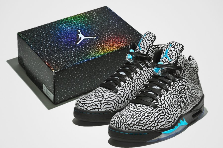 体 Air Jordan 3 首创的爆裂纹覆盖 Air Jordan 5 鞋身轮廓之上,