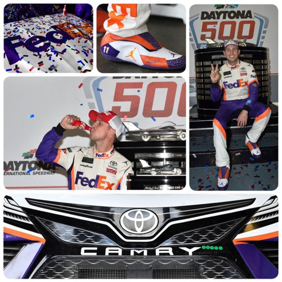 不仅涂装围绕呼应 Denny Hamlin 的车队主色,