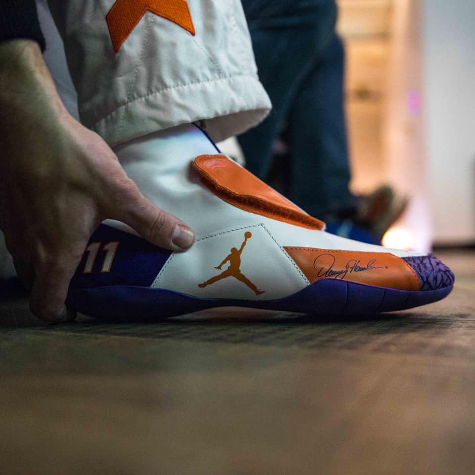 后跟圆环内镶嵌的 Jumpman Logo 与 23 字样,