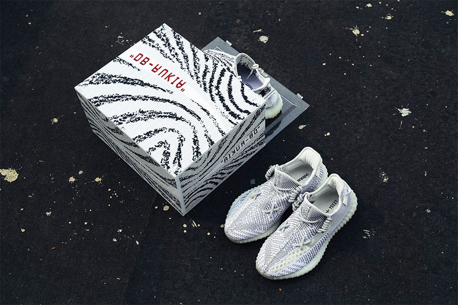 比如 DBRukia 刚刚推出的两个新品,分别以「Yeezy 白斑马」和「爆裂纹」作为灵感来源。