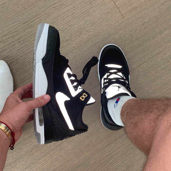 Air Jordan 3 Tinker 全新配色以类似黑水泥的造型示人。在鞋舌和 Swoosh 处加入反光材质,与黑色鞋面形成强烈反差,上脚效果格外亮眼。将于 8 月 15 日发售。
