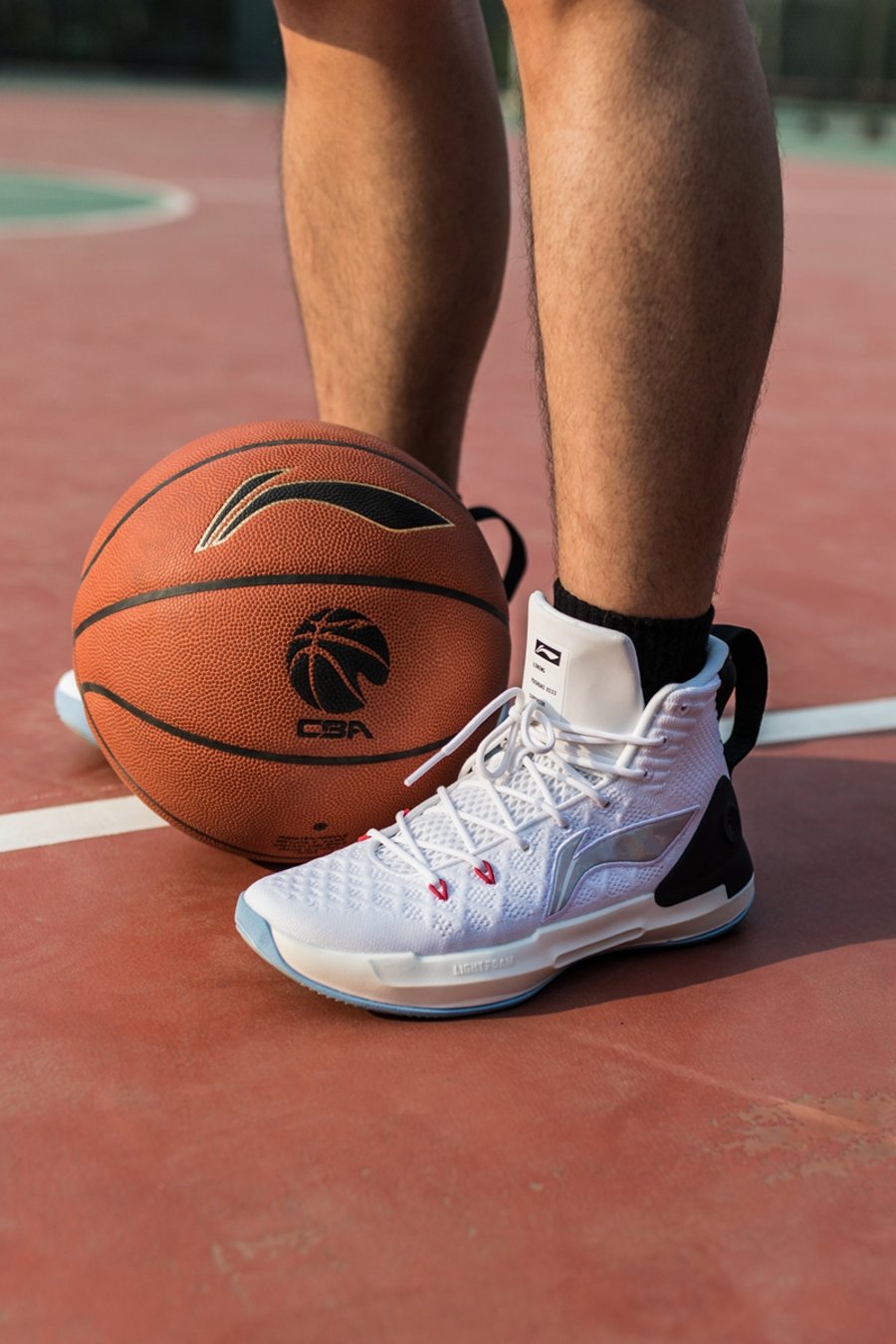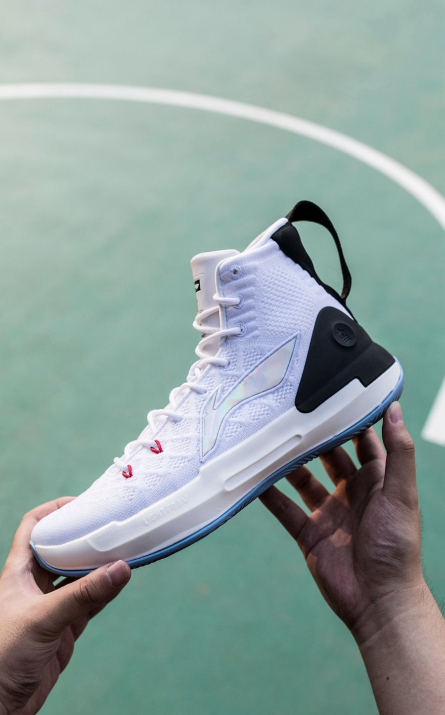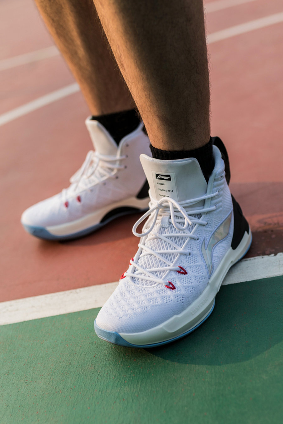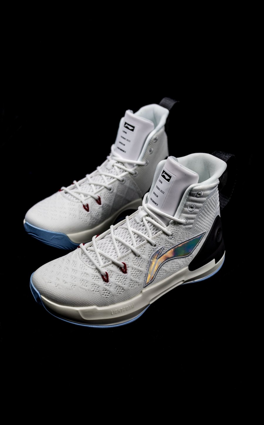 鞋身采用纯白色作为主色调,侧面辅以炫彩李宁 Logo 示人,搭配后跟黑色 TPU 点缀,配色简洁但外观却相当出众,带来实战鞋中难得的时尚气息。