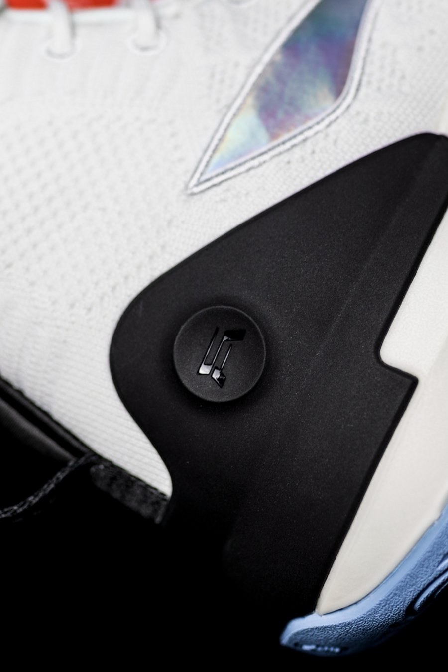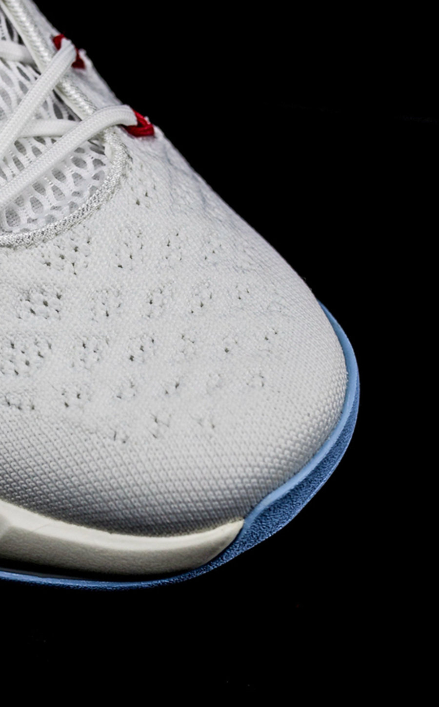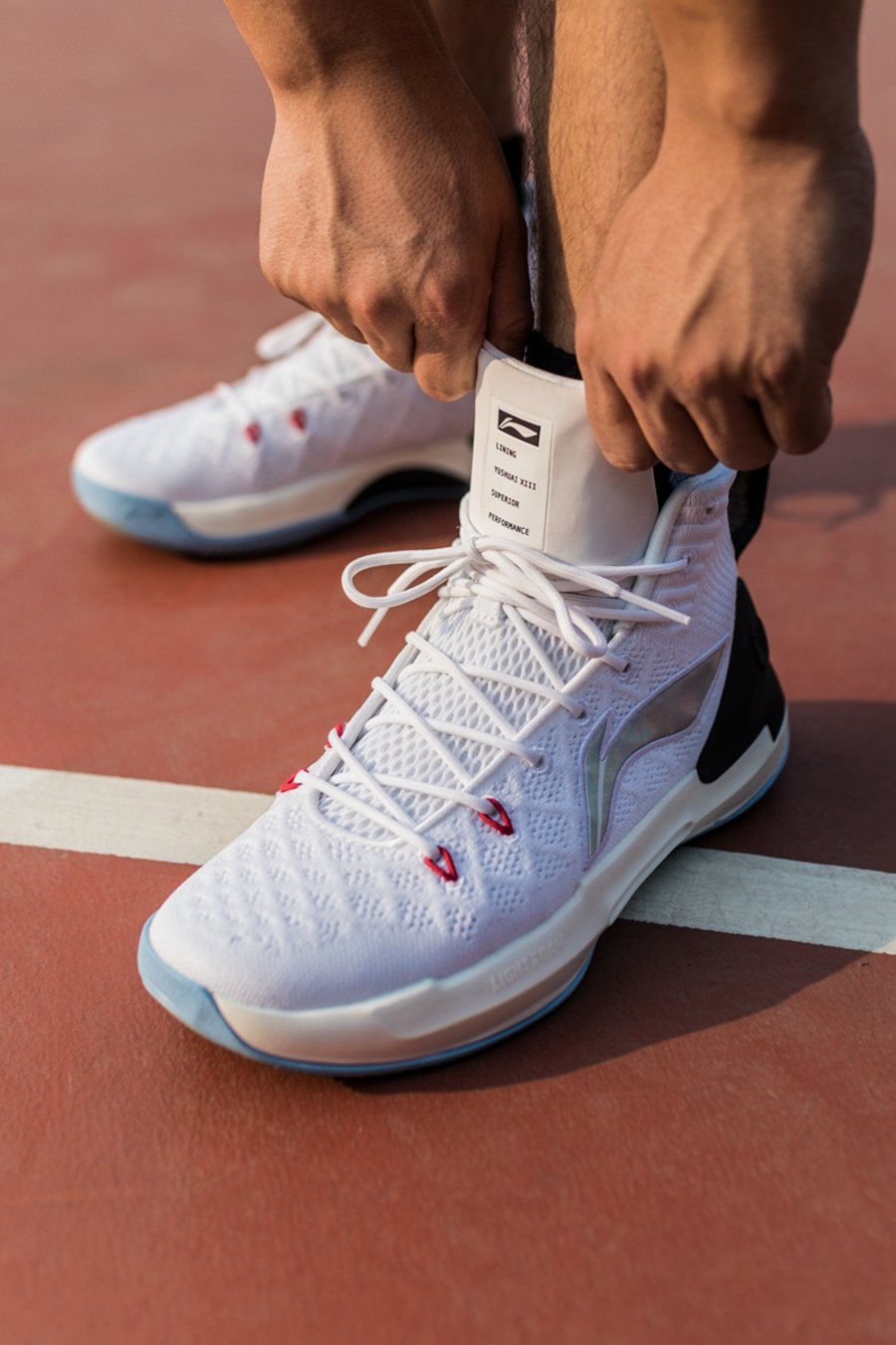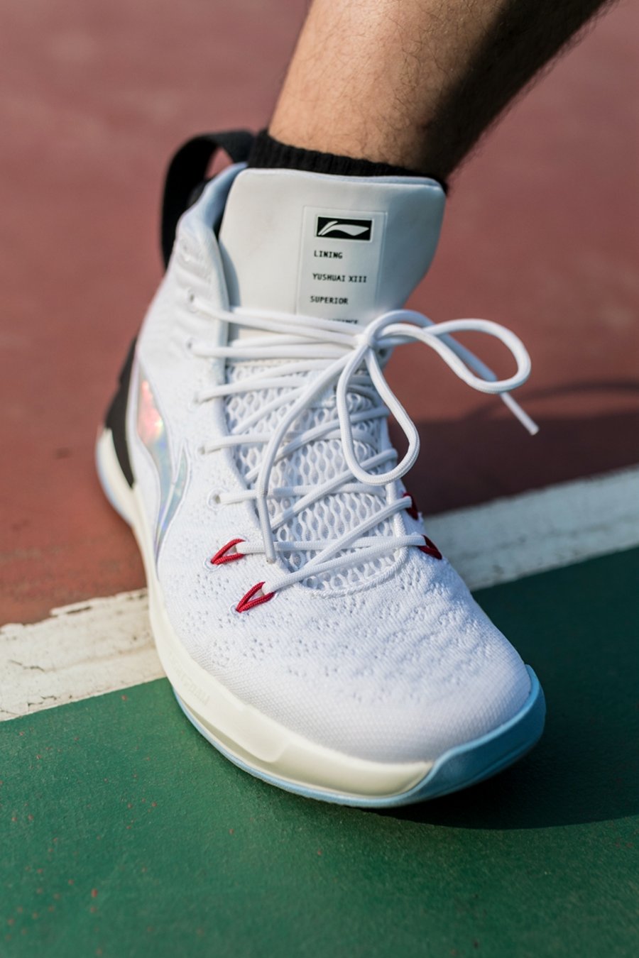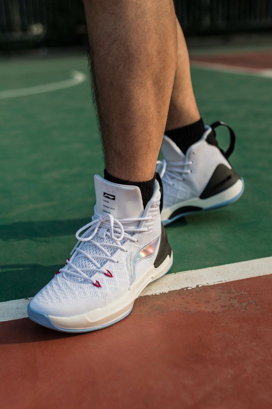 鞋身采用纯白色作为主色调,侧面辅以炫彩李宁 Logo 示人,搭配后跟黑色 TPU 点缀,配色简洁但外观却相当出众,带来实战鞋中难得的时尚气息。