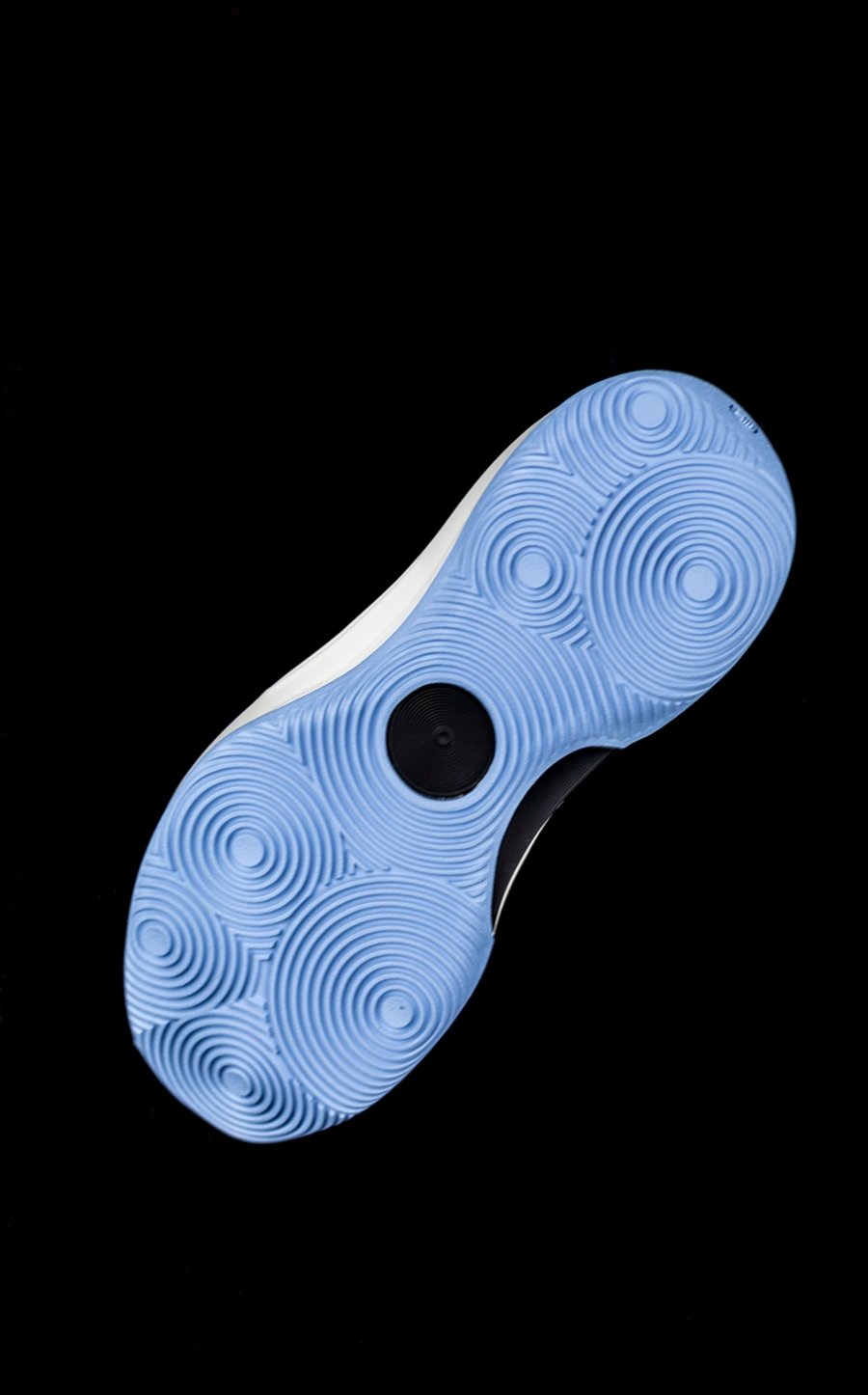 外底创新的多重同心圆纹路,在启动突破中展现出众的摩擦力,转身时更加灵活。同时橡胶的硬度不低,纹理深度尚可,外场耐用性也不必担心。