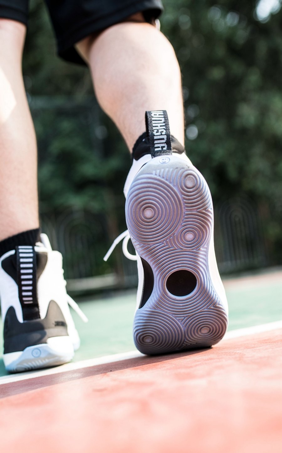 稳定的鞋身支撑与鞋底抗扭转,能够将双脚锁定在鞋腔内,实战中鞋脚一体,很踏实。