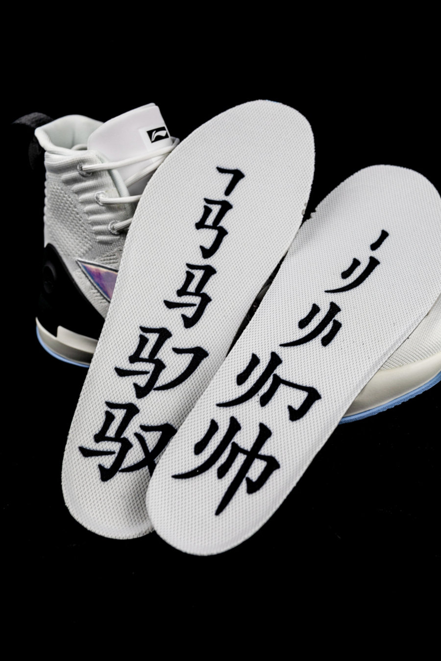 鞋垫也非常具有中国特色,左脚是「驭」字写出来的笔画,右边则是「帅」的笔画。