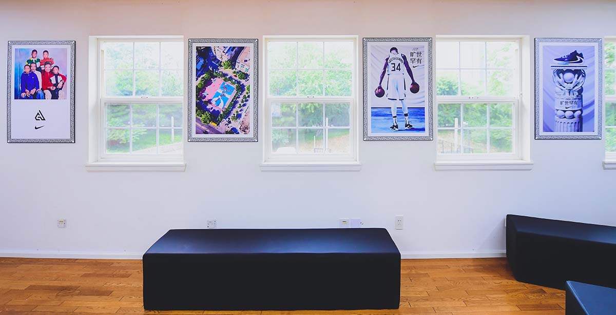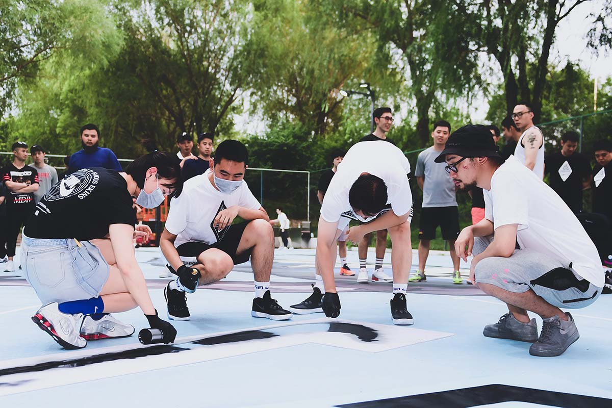 EKIN 团队随即偷偷请来设计师兼涂鸦创作人 @CAMEL617,在当时孩子们训练的那块球场,经历了几个日夜绘制出这幅字母哥肖像的球场。