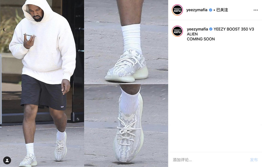 这款配色与侧透天使颇为相似,YeezyMafia 称之为 Alien 配色,并且很快就会正式亮相。
