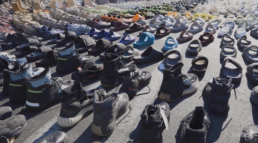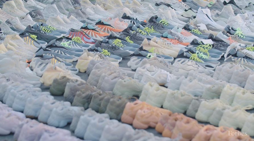侃爷近期还接受了福布斯的采访,晒出了巨量 Yeezy 存货,其中就包括这双 Yeezy 350 V3。