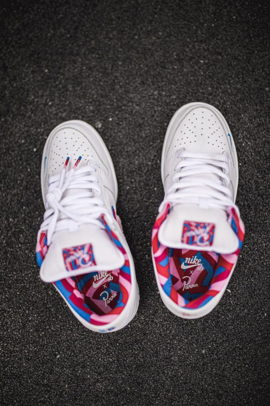 鞋舌、鞋垫、后跟以及鞋带头均出现 Nike SB 与 Parra 字样,整体艺术气息浓郁又细节丰富,彰显不凡个性!
