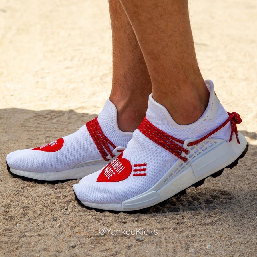 而早在 3 月,与 NIGO 私交甚好的菲董 Pharrell Williams 也曾上脚过一双红色版本的联名 Solar Hu。