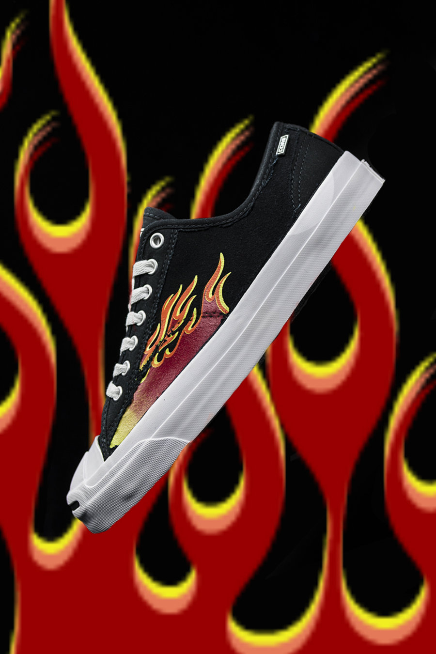 刮开的火焰印花虽然并没有像前两款一样布满鞋面,但从鞋头向后延伸的设计酷似复古肌肉车上的涂装,造型更嚣张。